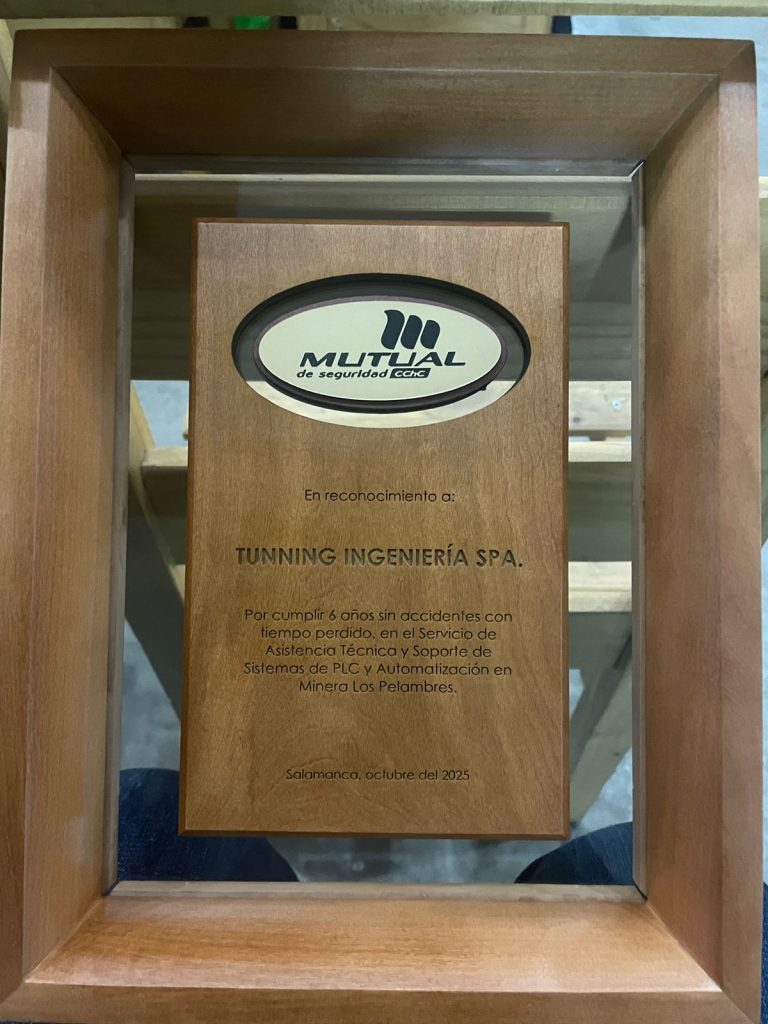 Fuimos reconocidos como empresa sin accidentes por la Mutual de Seguridad, como empresa colaboradora de Minera Los Pelambres