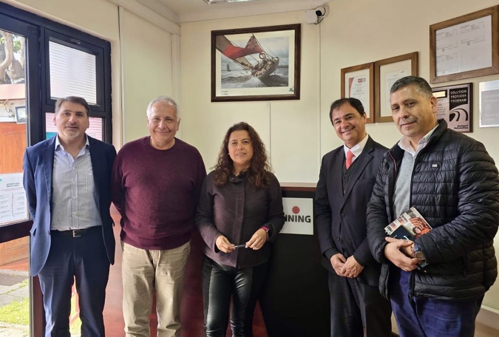 A Tunning mantém uma estreita parceria com o Liceu Chileno Alemão para a realização de estágios. Na foto, da esquerda para a direita: Jorge Elmohrez, Diretor de Operações; Claudio Jara, Diretor Geral; Solange Poblete, Diretora de Recursos Humanos; Alejandro Weinstein, Diretor da Corporação Educacional da ASIMET; Maximilian Osorio, Chefe do Departamento de Eletricidade e Eletrónica do Lichan.